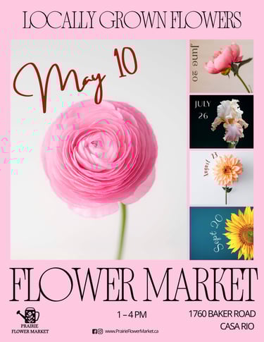 We are beyond excited to welcome you to Prairie Flower Market's 2026 season! Get ready to immerse yourself in the true experience of local flowers, with markets spanning from May to September. Just as the seasons and months change, so do our offerings of locally grown, specialty flowers. Each month brings a unique selection of blooms and greenery, cultivated with passion and care by our local farmers.